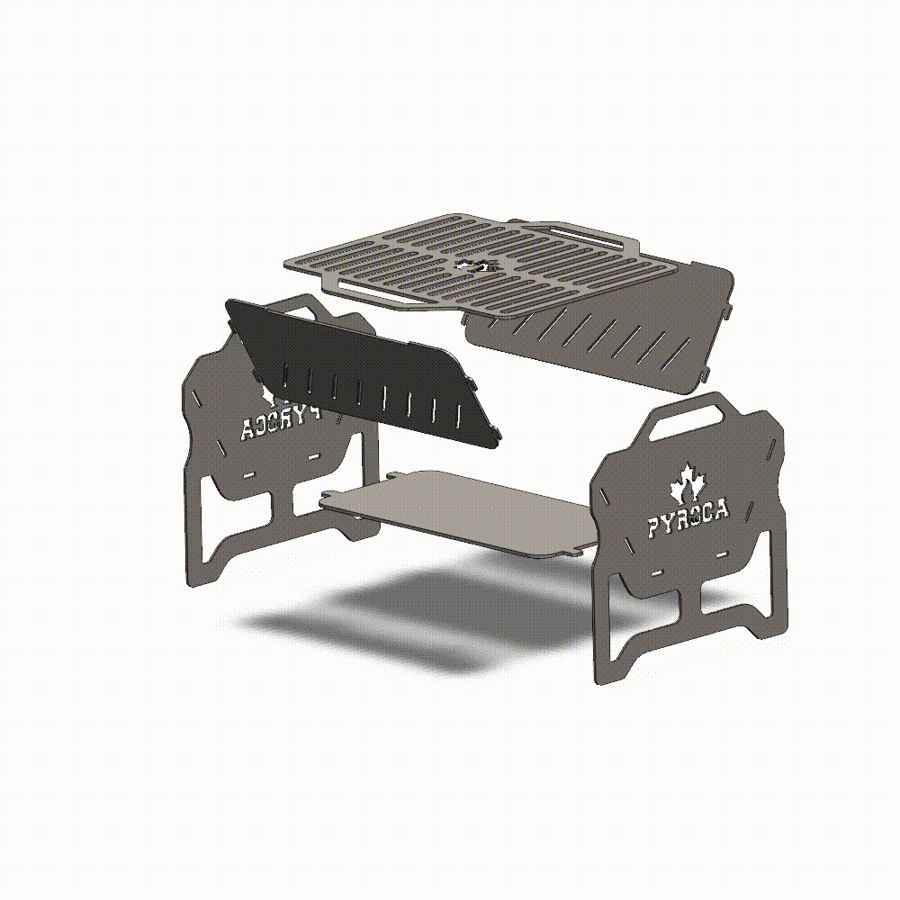 Ses plaques en acier inoxydable s’assemblent facilement, en quelques secondes et sans outil pour former un foyer robuste, compatible avec charbon ou petit bois. Pensé pour la portabilité : une fois démonté, il se fait discret avec seulement 10,6 po x 8,2 po.