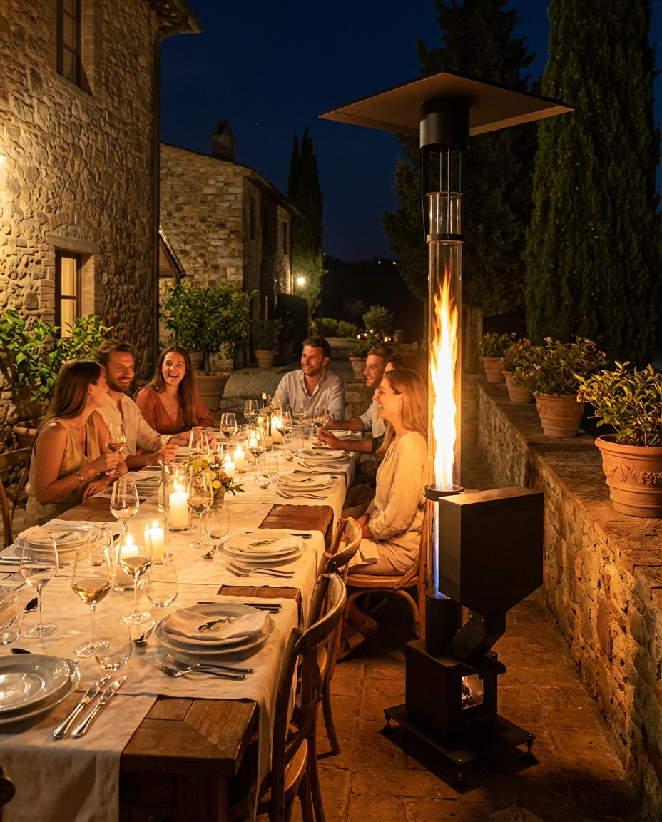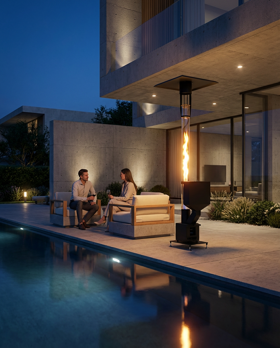 Bien plus qu’un simple foyer, ce chauffe-terrasse moderne diffuse une chaleur uniforme sans fumée, offre une lumière intense pour une ambiance chaleureuse et limite cendres et CO₂ grâce à son design élégant et sécurisé.